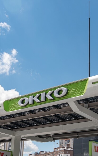Мережа ОККО продовжує укомплектовувати свої автозаправні комплекси сонячними електростанціями, які розміщуються на даху операторної та на даху над паливороздавальними колонками і дають змогу частково забезпечити електроенергією потреби АЗК, заощаджуючи на її закупівлі на енергоринку.