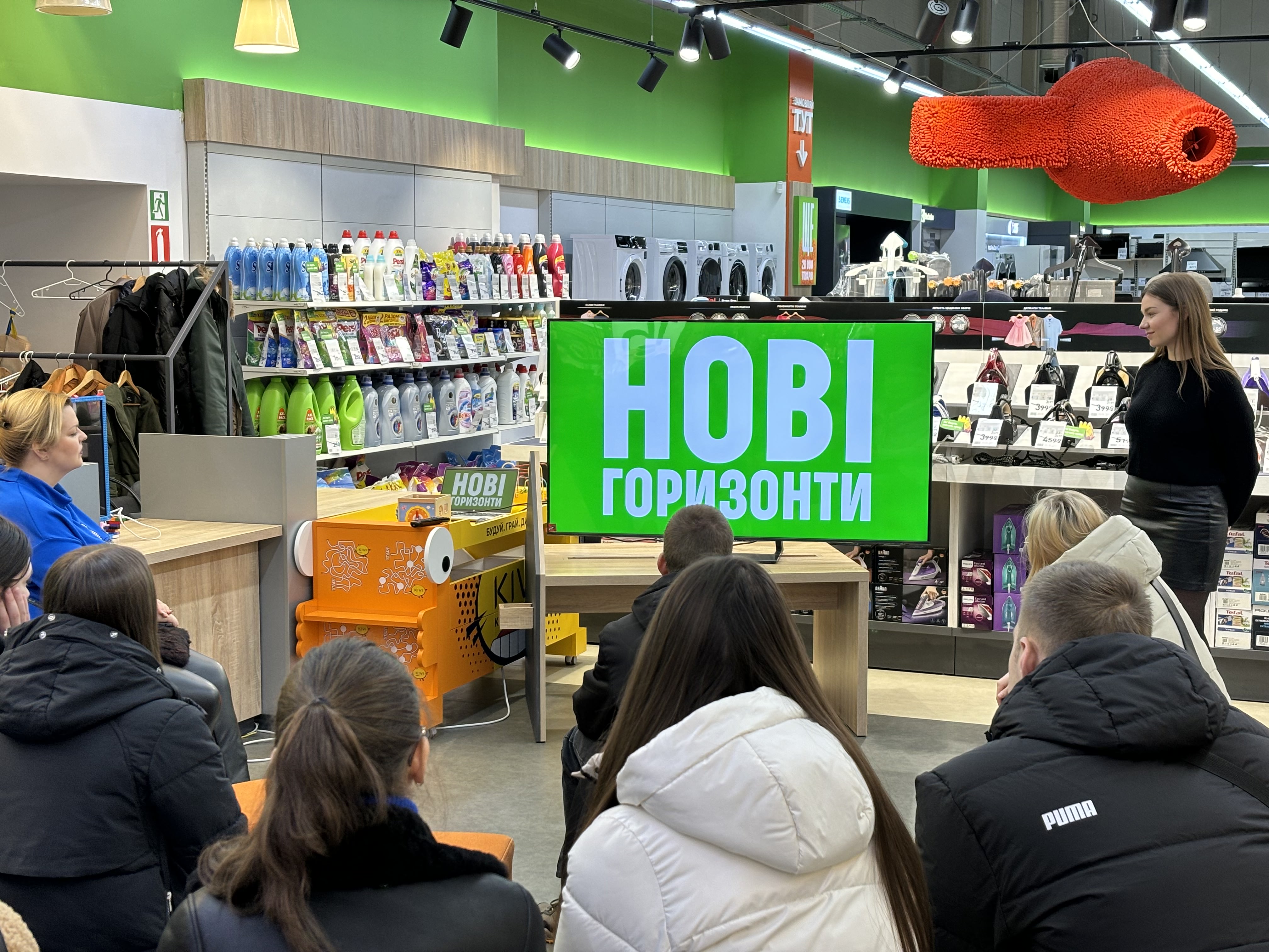 Під час екскурсії молодь дізналась про особливості організації простору в магазині, секрети викладки товарів на полицях, специфіку створення реклами та брендової продукції, а також багато говорили про можливості кар’єрного розвитку.