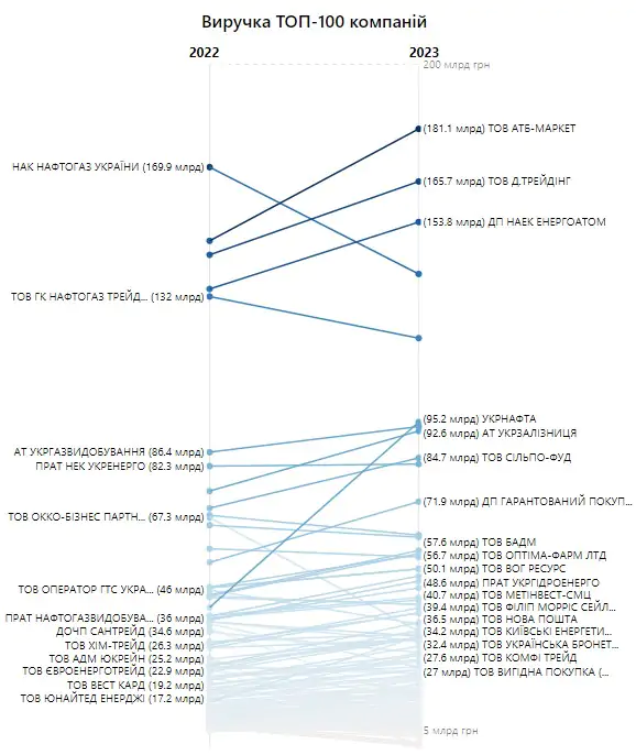 Ритейлер «АТБ» за оборотами вперше потіснив з чільного місця рейтингу багаторічного лідера НАК «Нафтогаз України». Гарні результати продемонстрували й інші компанії у галузі ритейлу.
