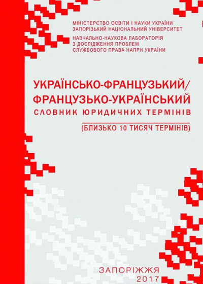 "Українсько-французький/французько-український словник юридичних термінів" містись близько 10 тисяч найпоширеніших юридичних термінів і фахових термінологічних сполучень, що згруповані за темами, відповідно до окремих правових напрямів практичної юриспруденції. Словник складається з двох рівнозначних частин, які покликані допомогти у перекладі обома мовами. За основу для побудови словника було взято чинну нормативно-правову базу, актуальні підручники з юриспруденції і наукові публікації провідних вчених-правознавців.