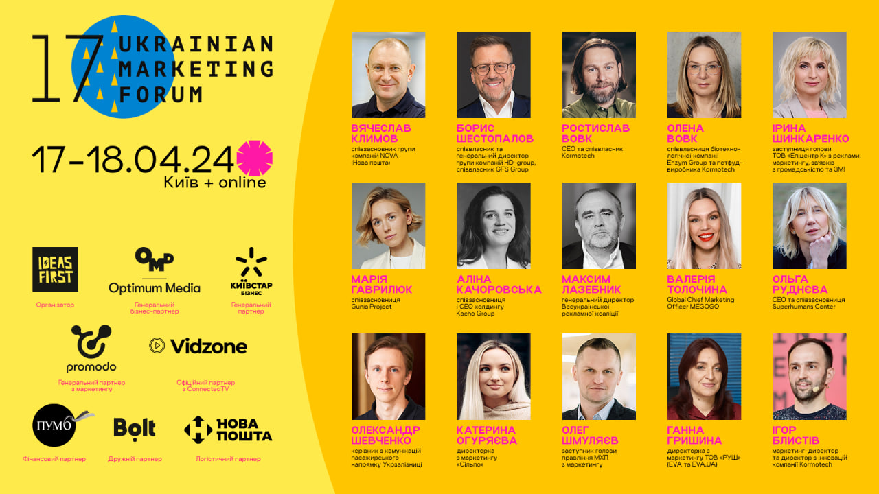 Із детальною програмою 17-го Українського маркетинг-форуму можна ознайомитися за посиланням: https://bit.ly/43OAK5w