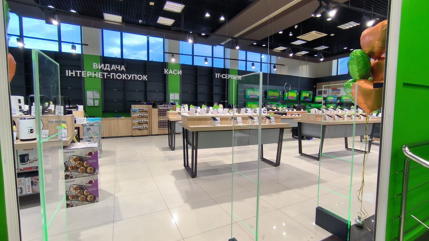 Площа нового магазину в Олександрії 300 кв. м. Традиційно в магазині представлений широкий асортимент товарів, а також демо-зони різних категорій домашніх гаджетів та аксесуарів.