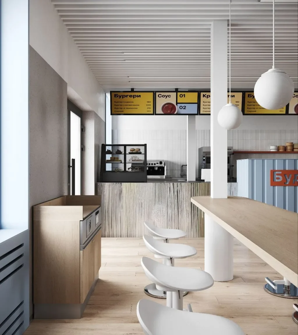 Володимир Матвійчук розповів, що інтер'єр буде практичним, за потреби усі його елементи можна швидко демонтувати й перевезти на нове місце. Планування закладу теж буде максимально функціональне: без повноцінної кухні, окремо — барна стійка, місце, де готуються страви та столики.