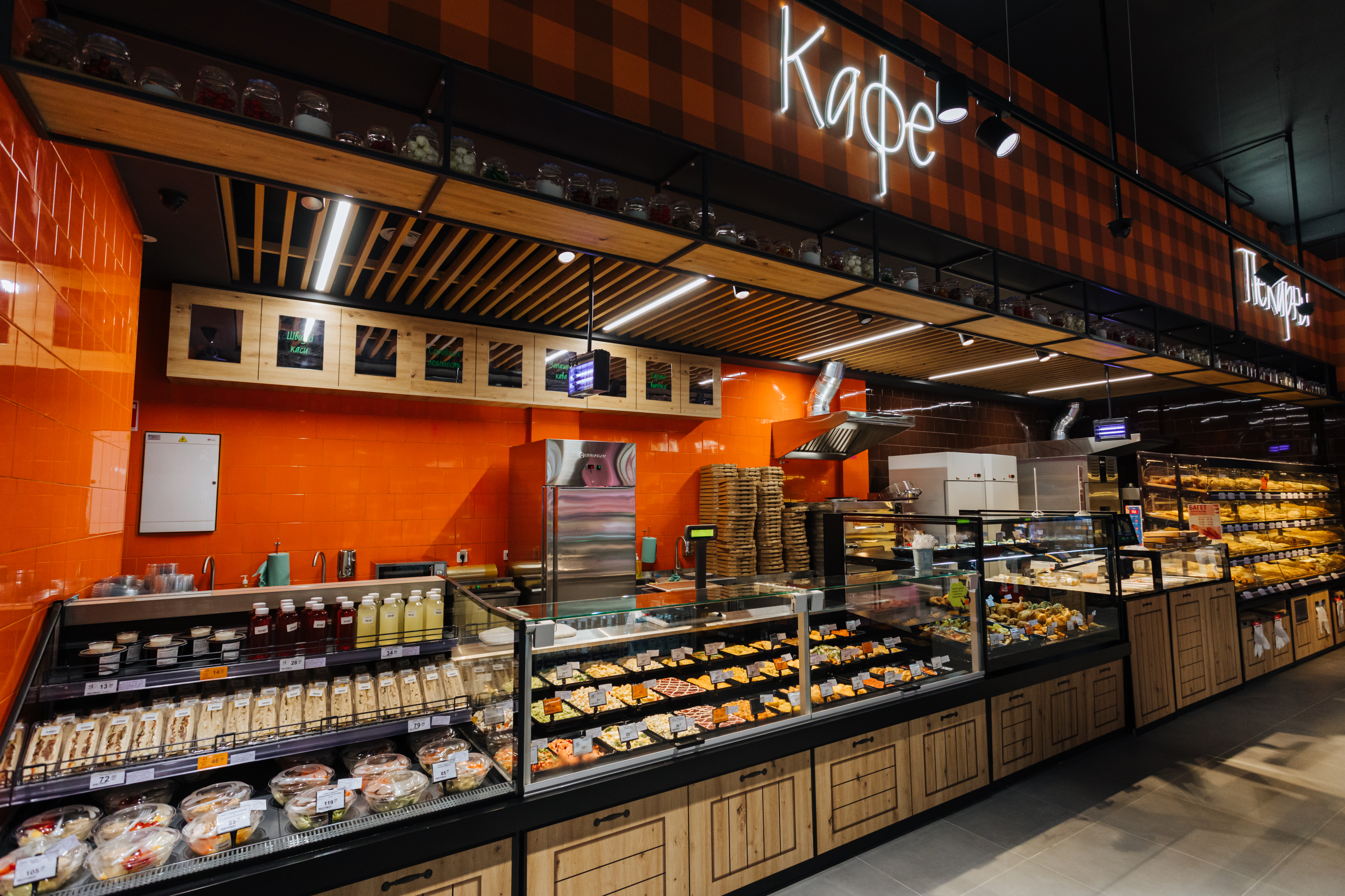Атмосферу домашнього затишку доповнюють аромати страв з VARUS CAFE, де можна замовити різноманітну готову їжу, рум’яну випічку та фірмову піцу власного виробництва щойно з печі. Також є можливість присісти на швидкий обідній перекус чи перепочити і випити кави.
