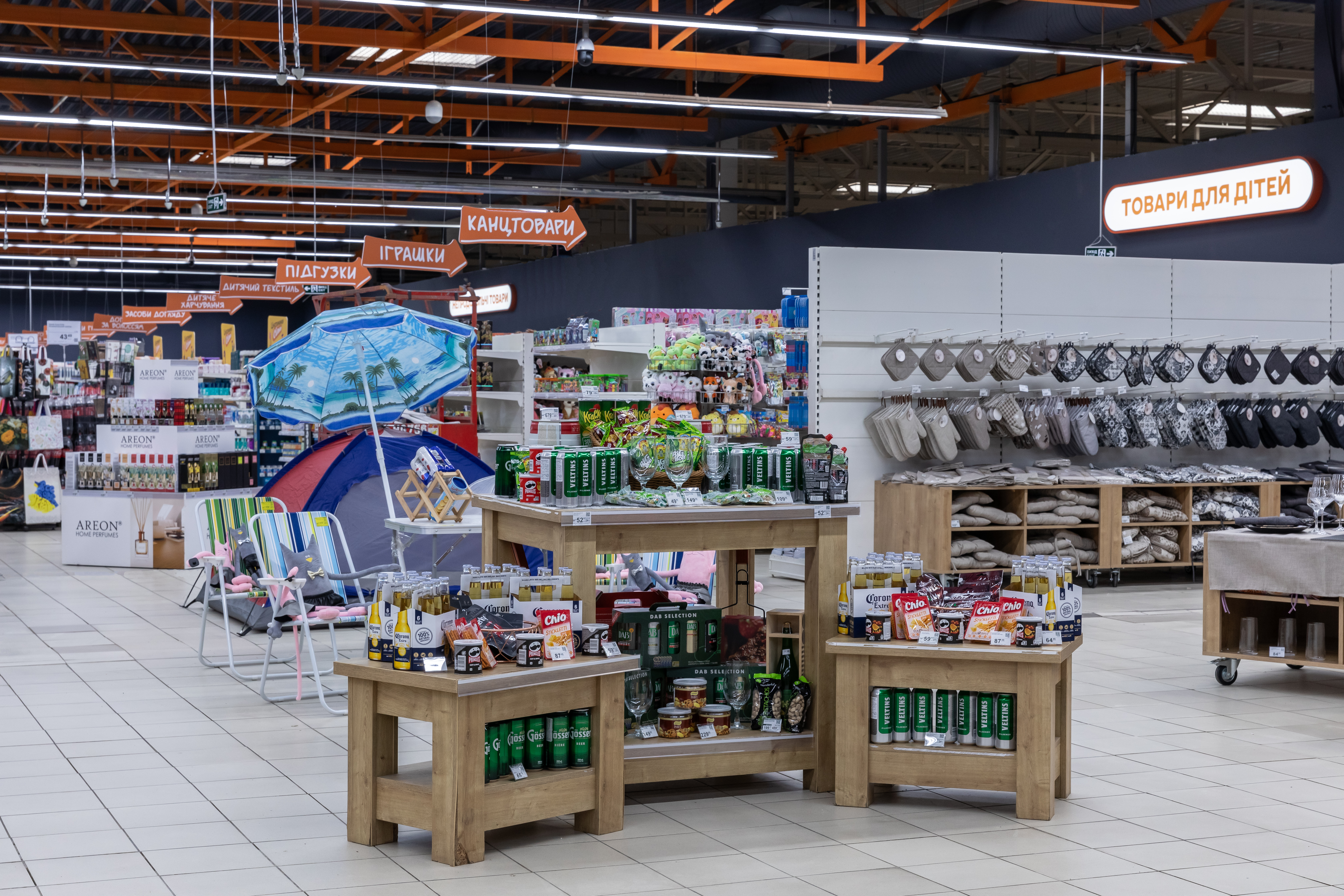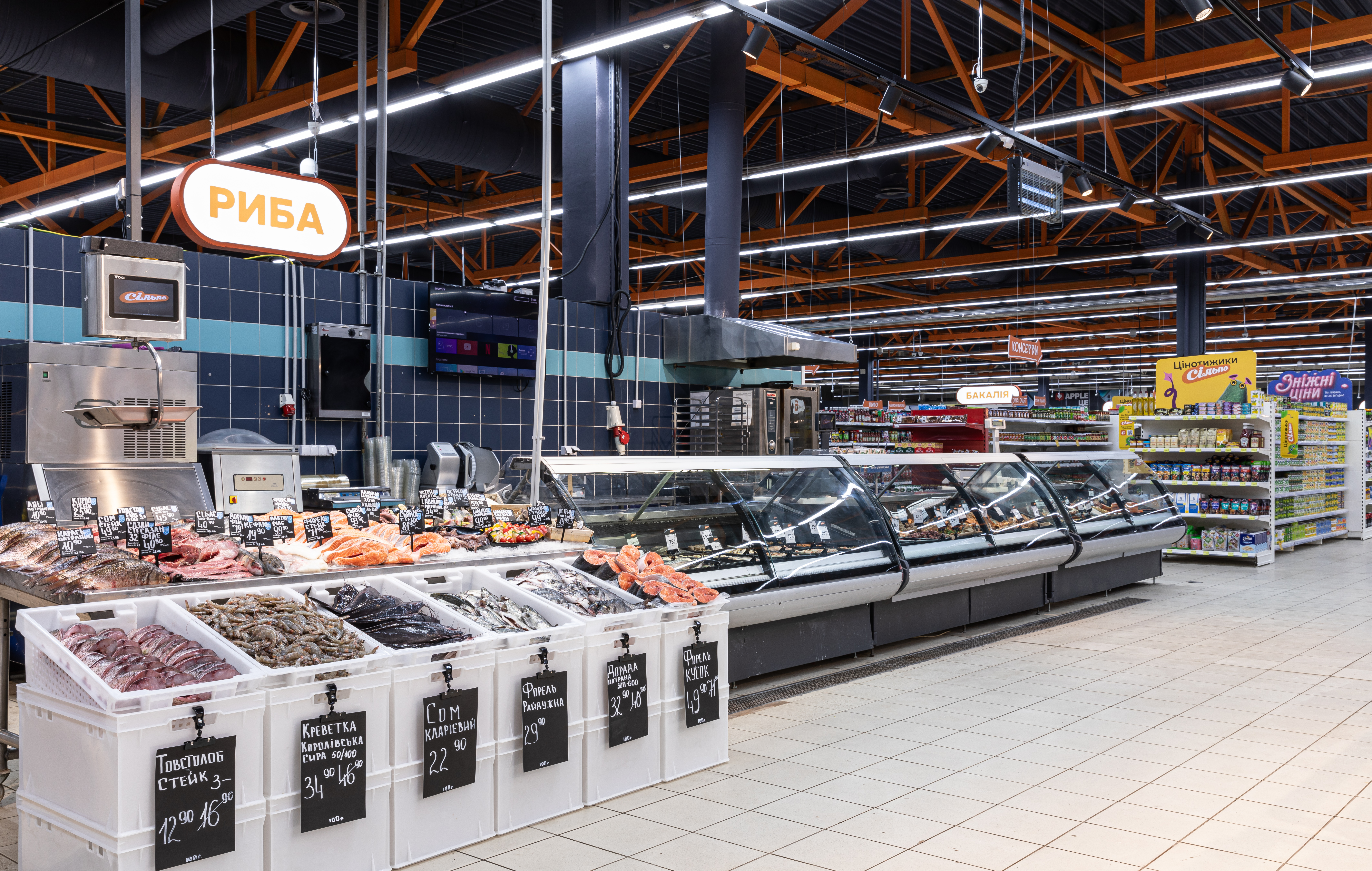 Площа торговельного залу — 3900 м кв. В асортименті «Сільпо» риба з власної коптильні, свіжі овочі та фрукти, крафтові продукти від українських фермерів з «Лавки Традицій», піца та сендвічі з власної пекарні.