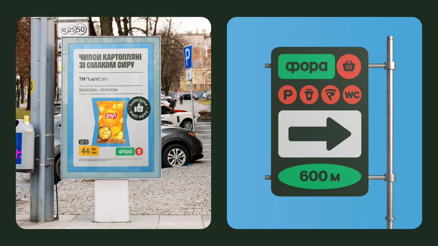 Дизайн мережі мав стати більш сучасним, щоб бути в трендах сьогодення та яскравіше демонструвати бренд «Фора». Taktika оновила айдентику бренду, розробивши нові фірмові елементи. Зокрема, запропонували нові принципи верстки для макетів у всіх каналах комунікацій — від вітрин до соцмереж.