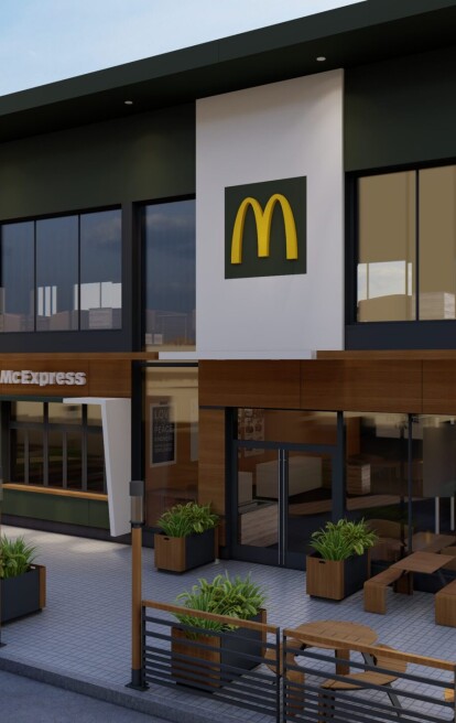Оновлений McDonald’s буде двоповерховим, матиме терасу на другому поверсі, а в екстер’єрі нового закладу використають традиційний для мережі темно-зелений колір, перший поверх облицюють стилізованими під дерево панелями.