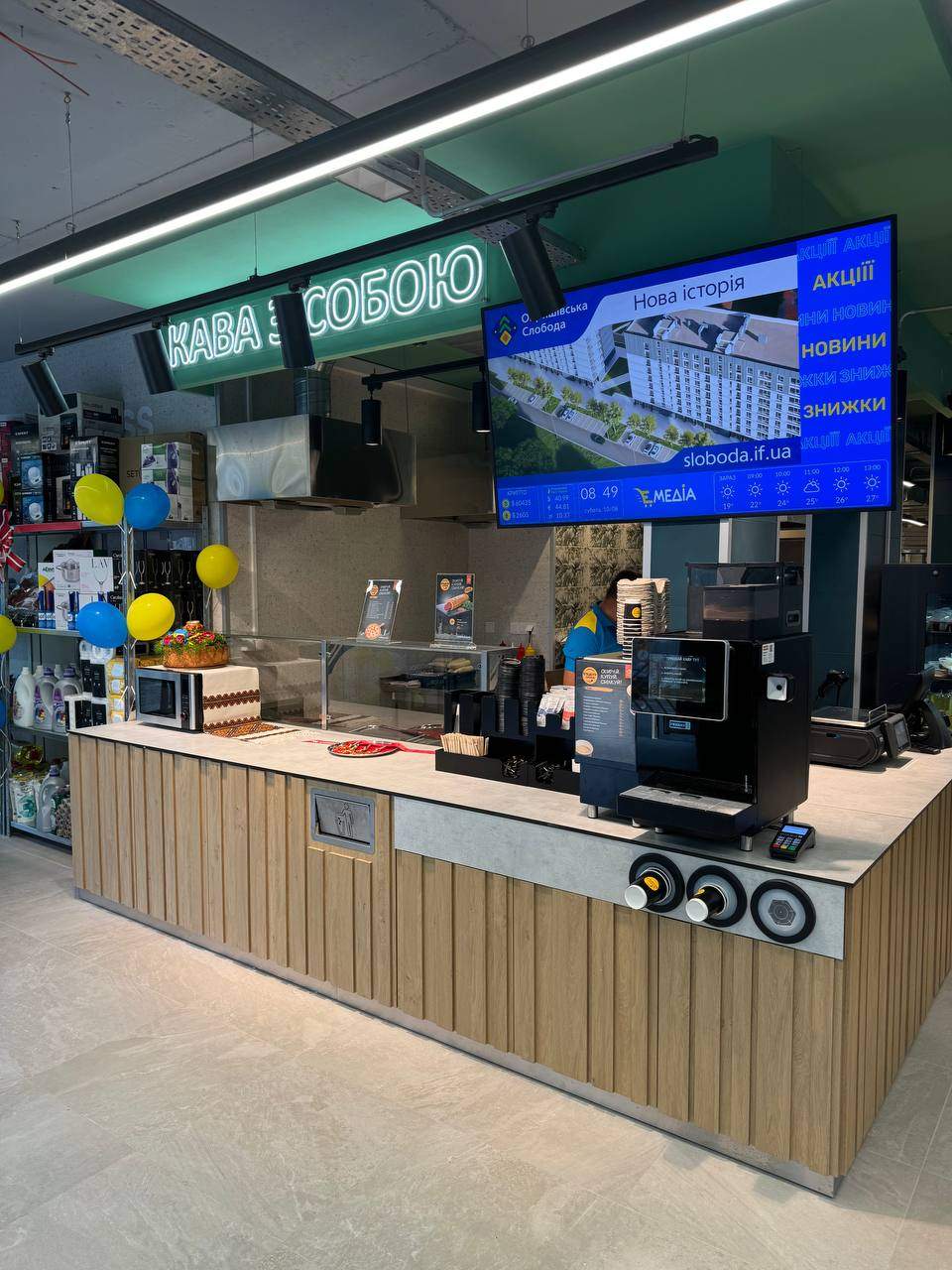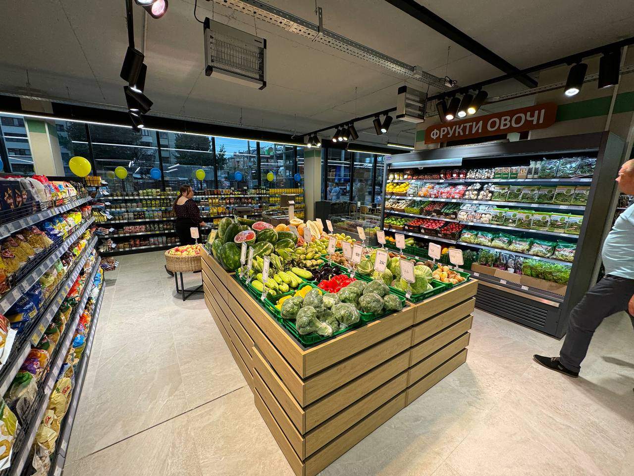 Магазин розмістився на першому поверсі ТЦ та зайняв площу 835 кв. м, а його товарна пропозиція налічує до 15 тис. артикулів.
