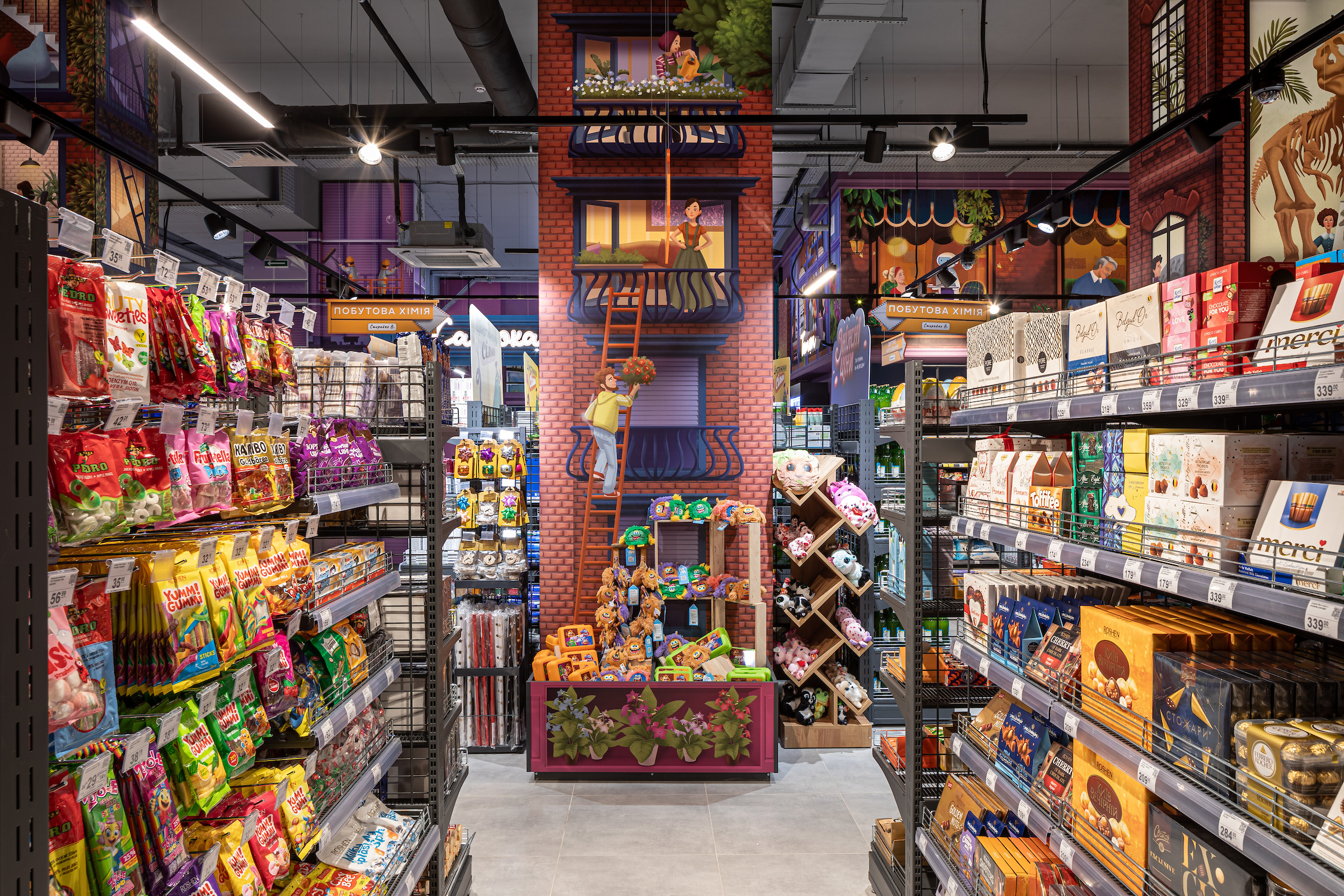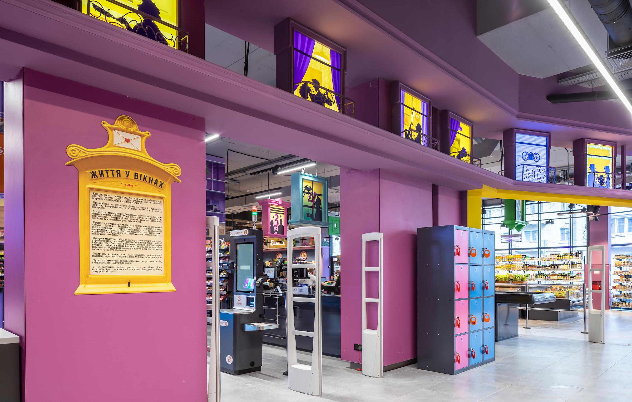 У Тернополі відкрився новий супермаркет «Сільпо», у якому можна «підгледіти історії», що вирують за вікнами маленького містечка. Кожне вікно — окрема замальовка з життя.