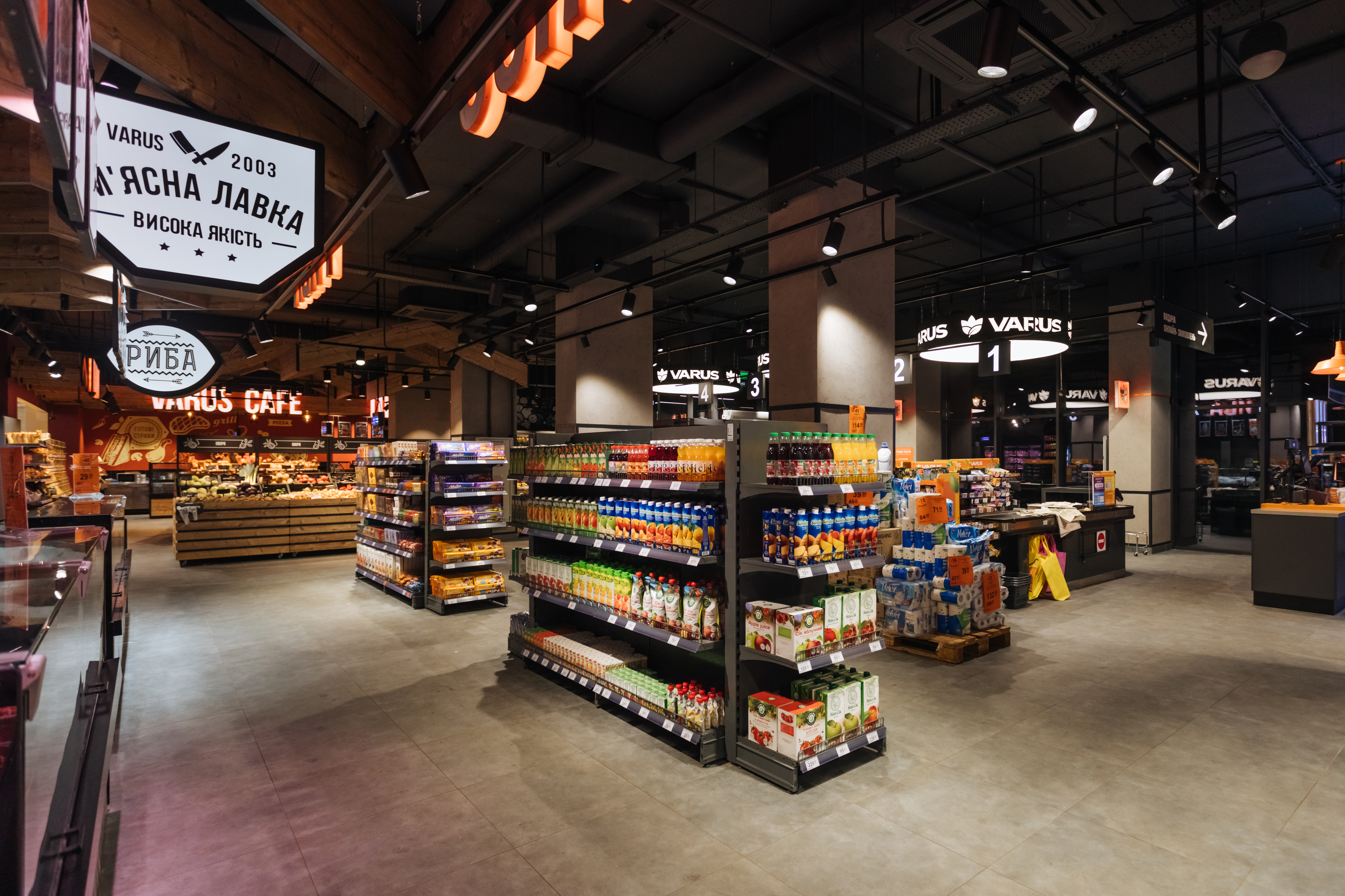 VARUS — це поєднання фуд-холу та супермаркету, що забезпечує максимальний комфорт для клієнтів. Дизайн, розроблений компанією JDV з Нідерландів, вирізняється сучасними рішеннями та зручною навігацією, що дозволяє легко знайти потрібний відділ. Кожна деталь інтер’єру продумана для створення приємної атмосфери: стильні полиці, яскраві вивіски та зручне планування забезпечують комфортний простір для покупок.