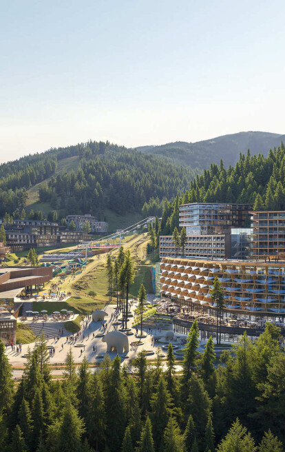 На території 20 га першої черги курорту також побудують п’ять готельних комплексів на 1100+ номерів разом із рекреаційною інфраструктурою зі спа-зонами, басейнами, ресторанами, дитячими та бізнес-зонами. Завершення будівництва першої черги планується у 2028-2029 роках.