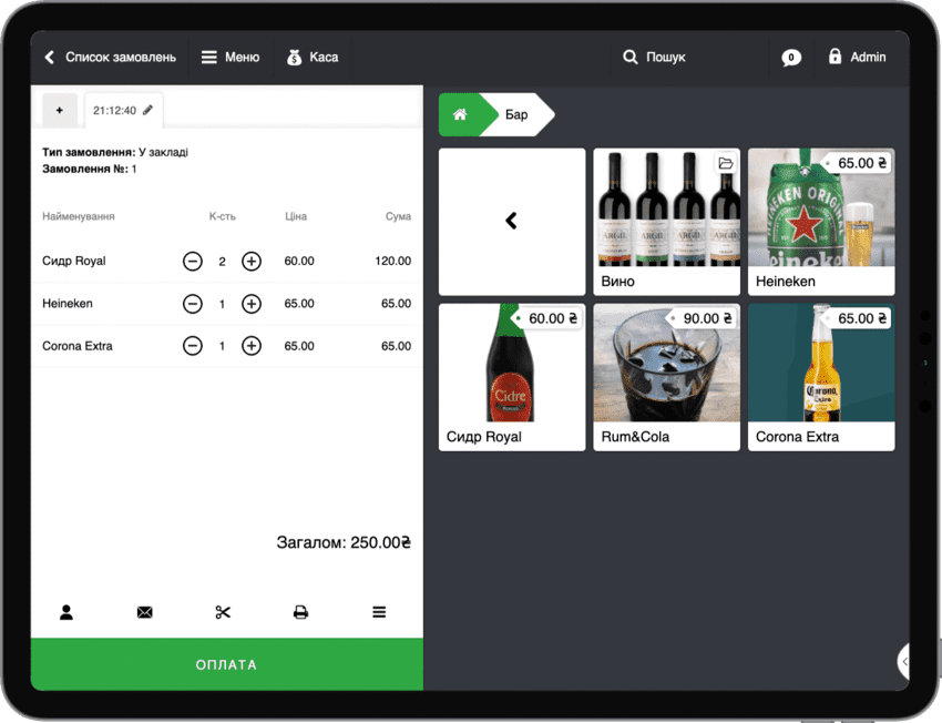 - Друк пречеків. Програмне забезпечення дозволяє друкувати попередні чеки, що містять усі позиції замовлення та ціни, що дає можливість клієнту перевірити правильність рахунку перед оплатою.