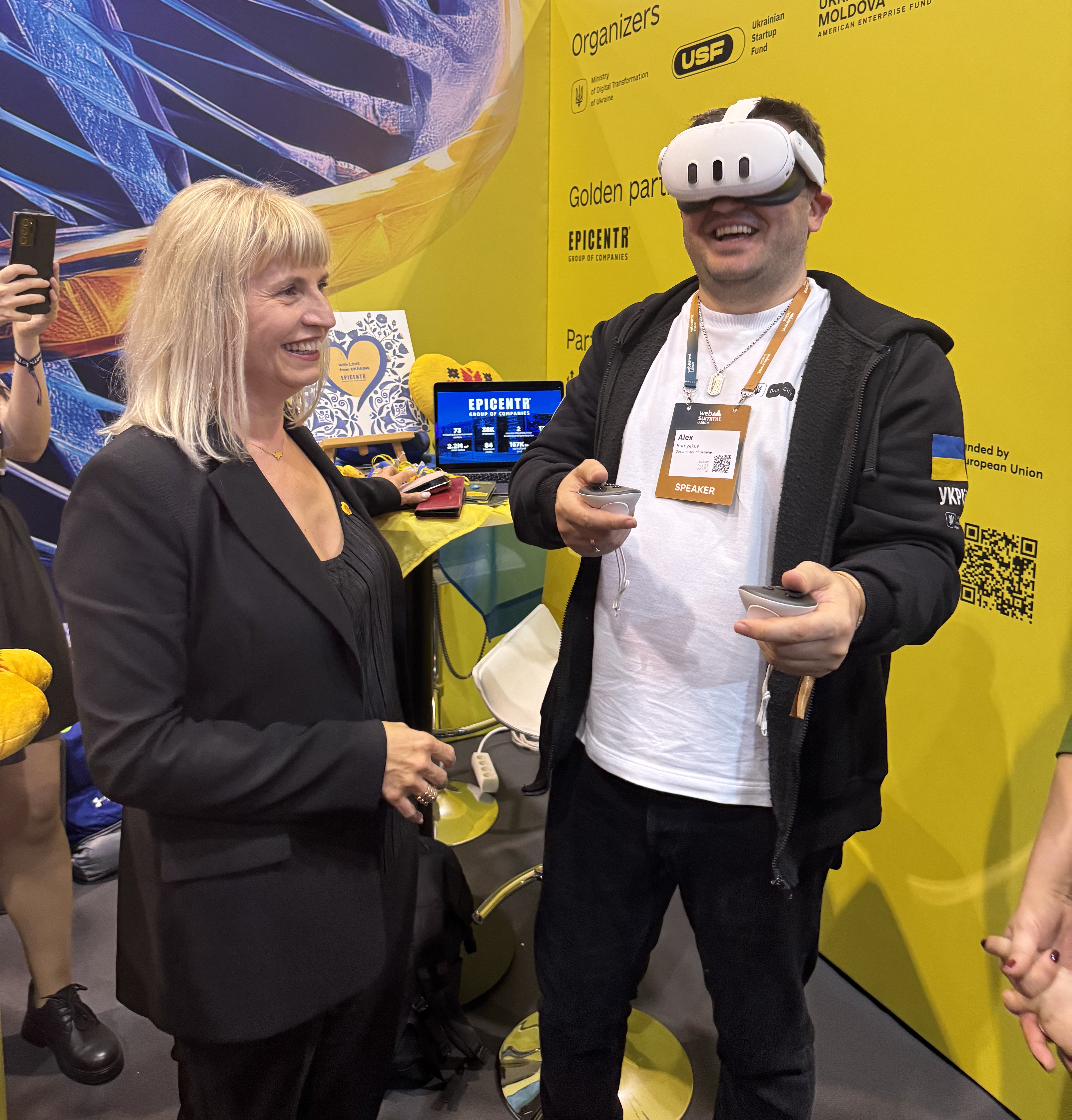 Ірина Шинкаренко також взяла участь у суддівстві конкурсу стартапів на Web Summit, підтвердивши важливість підтримки інновацій і підприємництва в Україні.