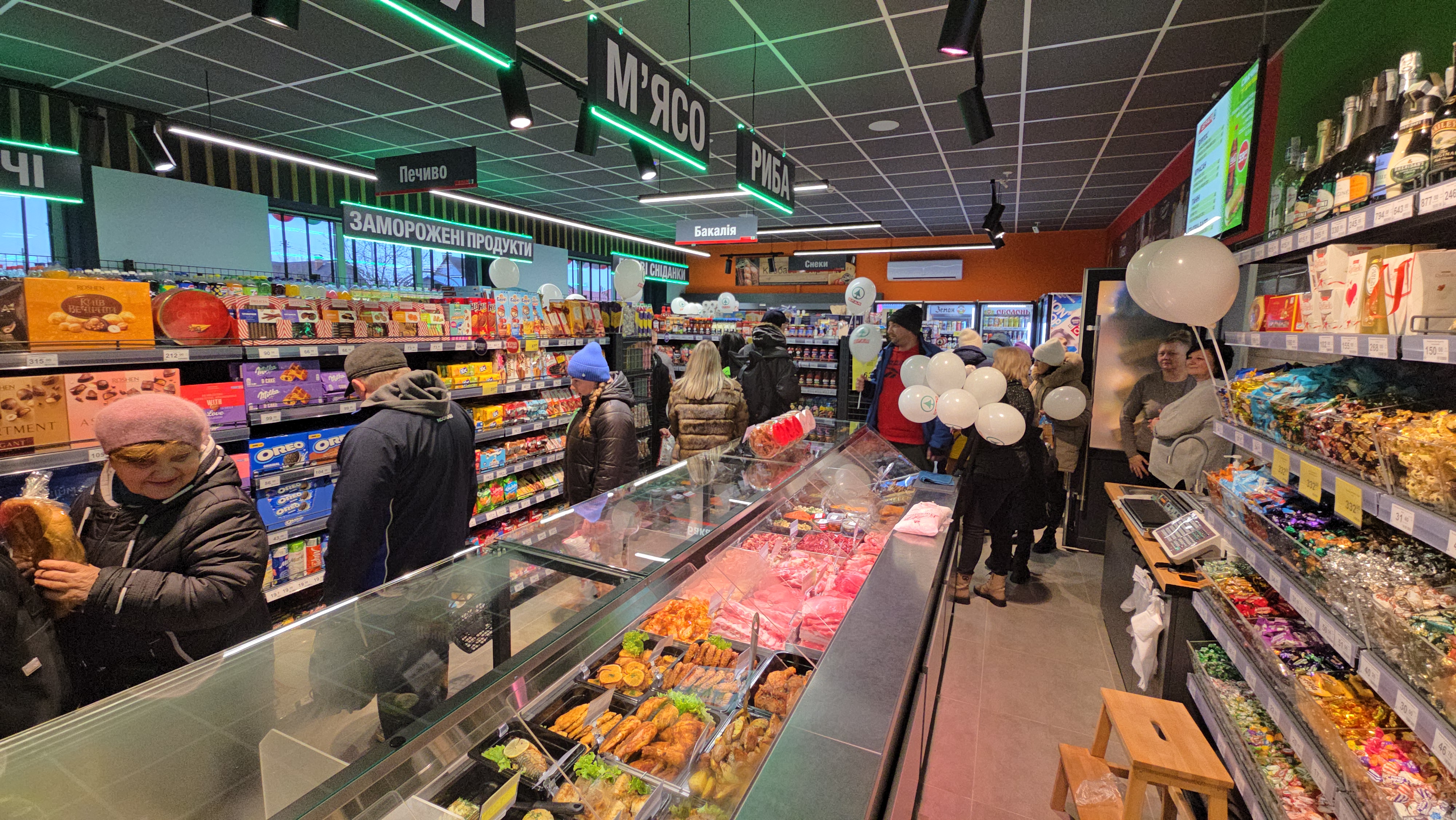 У магазині площею 100 квадратних метрів представлена ​​широка лінійка товарів: напої, смаколики, фрукти, а також свіже м’ясо, готові страви у відділі кулінарії.
