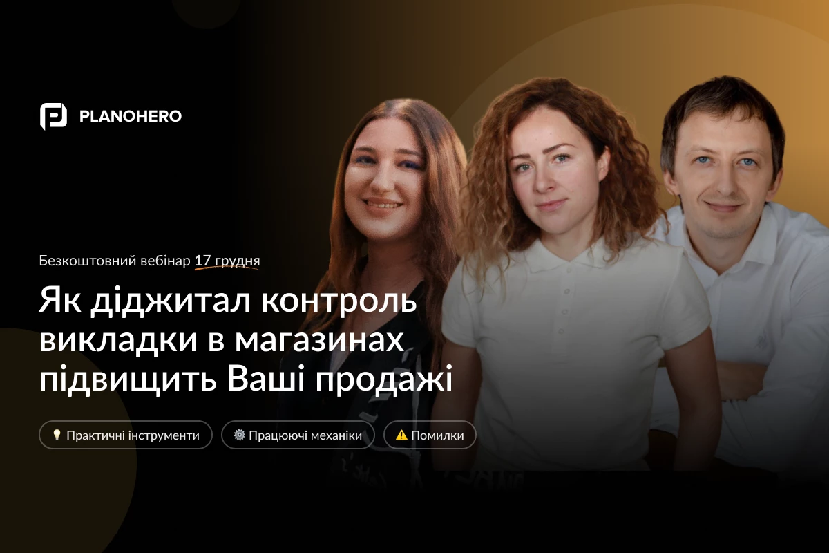 Долучайтеся до безкоштовного вебінару 17 грудня о 15:00. Тема — «Як діджитал контроль викладки в магазинах підвищить Ваші продажі: помилки, працюючі механіки та практичні інструменти». Дізнайтеся, як налагодити процес контролю викладки та перетворити полиці на потужний інструмент прибутку.