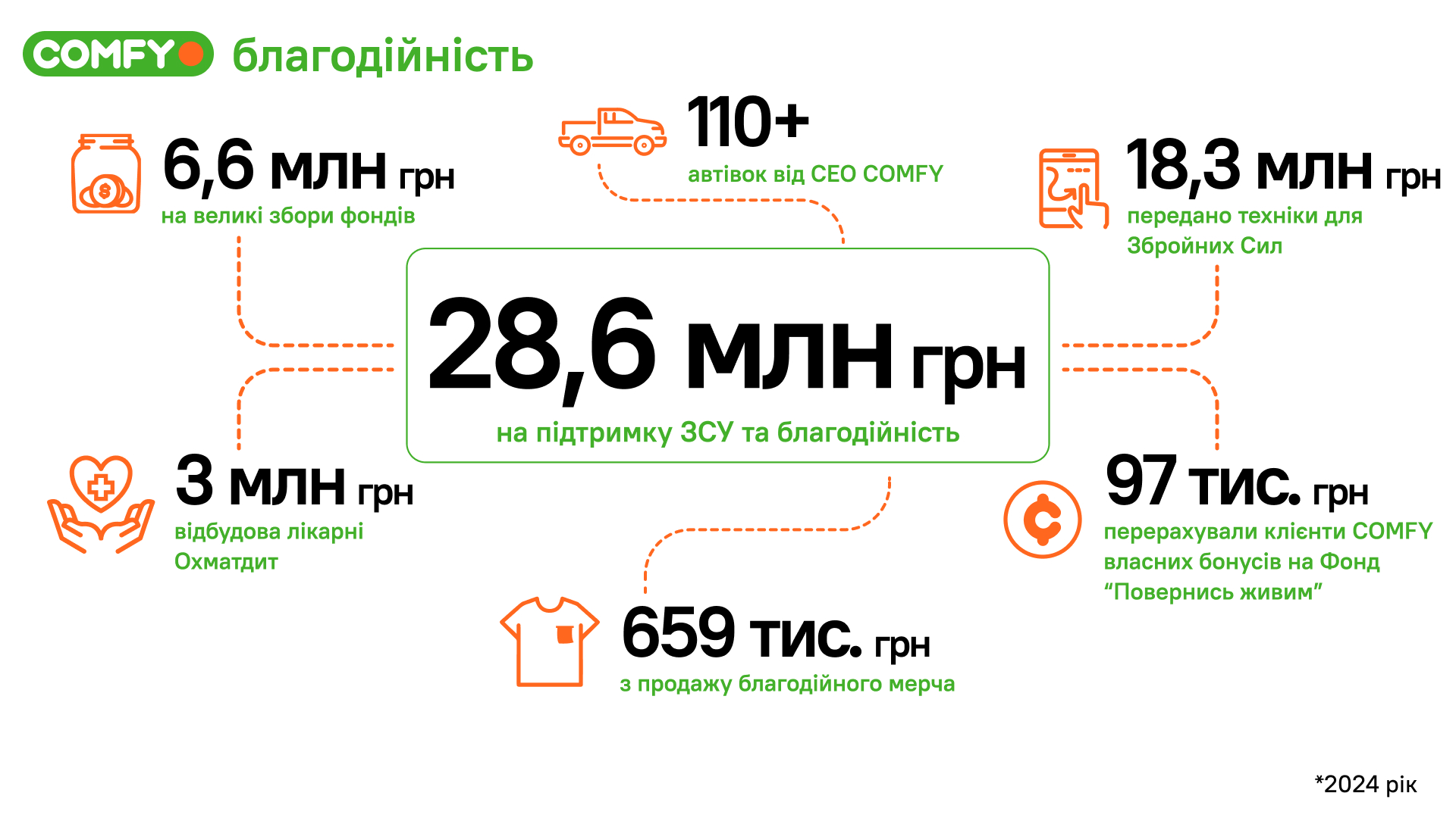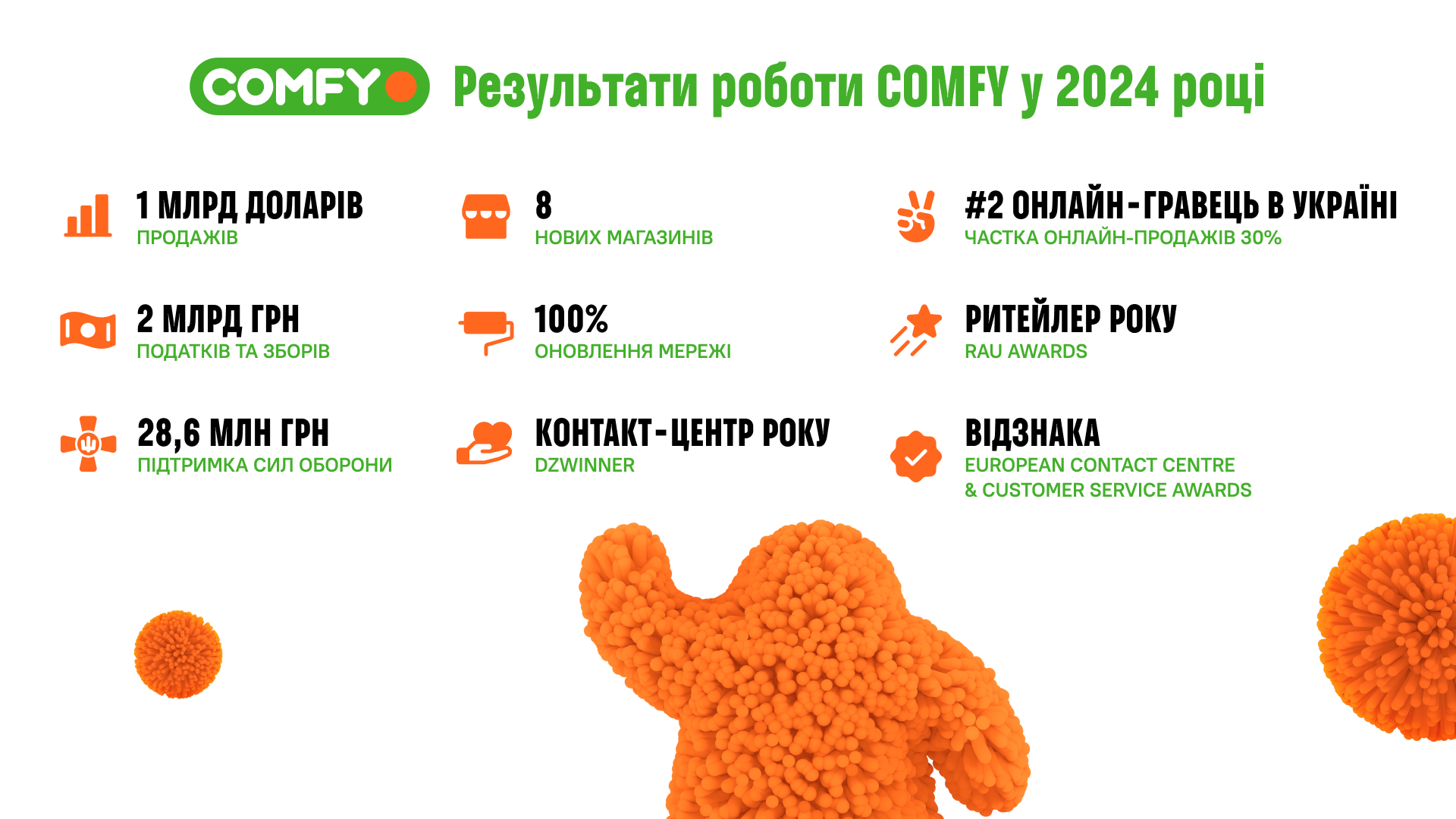 Мільярд доларів продажів, 2 млрд грн податків та 28,6 млн грн на підтримку Сил оборони: COMFY про 2024 рік
