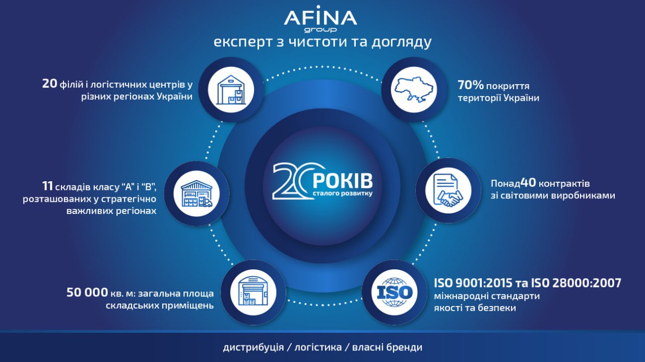Минулий рік став знаковим для AFINA Group: компанія відзначила 20-річчя своєї діяльності, розширила логістичну інфраструктуру, отримала міжнародні сертифікати якості роботи та зміцнила позиції як провідний гравець у сфері дистрибуції, логістики та створення власних брендів.