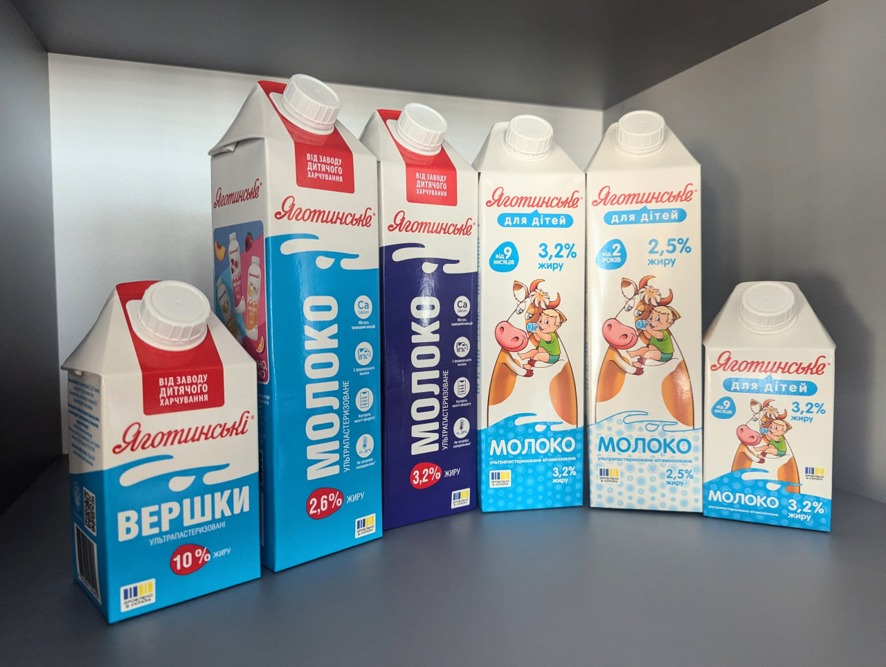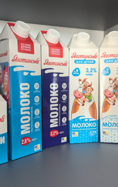 Продукція в новому пакованні вже на полицях магазинів. Зокрема в ньому завод випускає продукцію ТМ «Яготинське»: