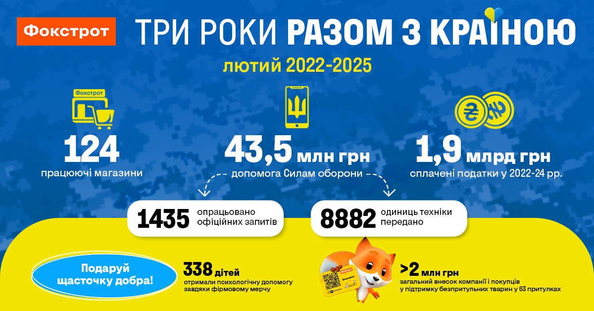 До третьої річниці повномасштабного вторгнення РФ в Україну в мережі електроніки і побутової техніки «Фокстрот» підбили підсумки роботи