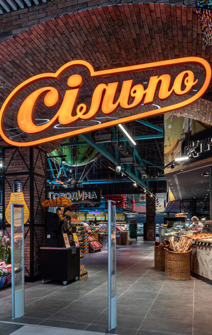 Команда «Сільпо» поєднала в дизайні магазину стімпанк і лофт: цегла, метал, зістарене дерево й бетон. Супермаркет площею 1368 м² наповнений незвичними предметами, які ніби балансують на межі функціональності й творчого хаосу.