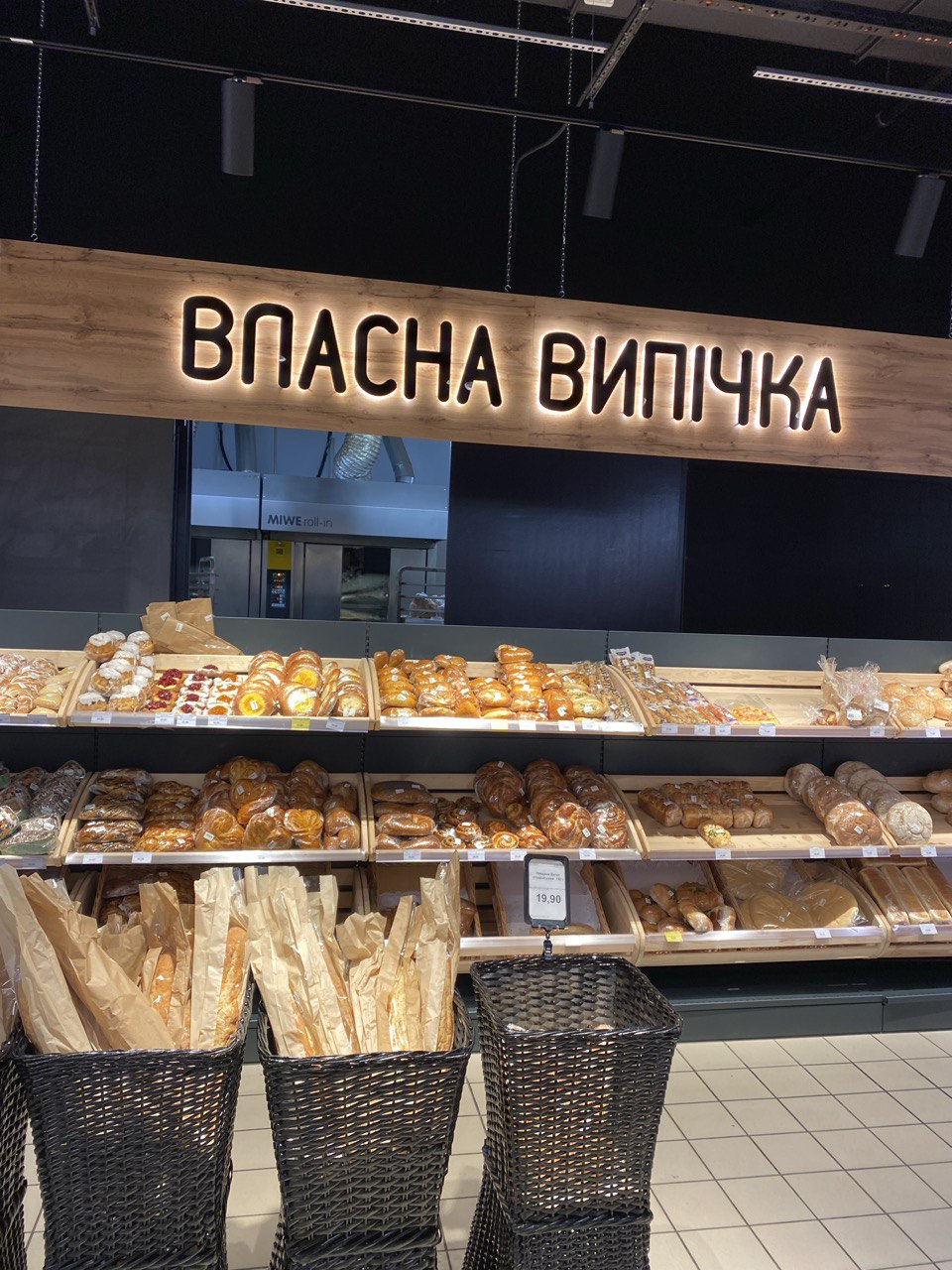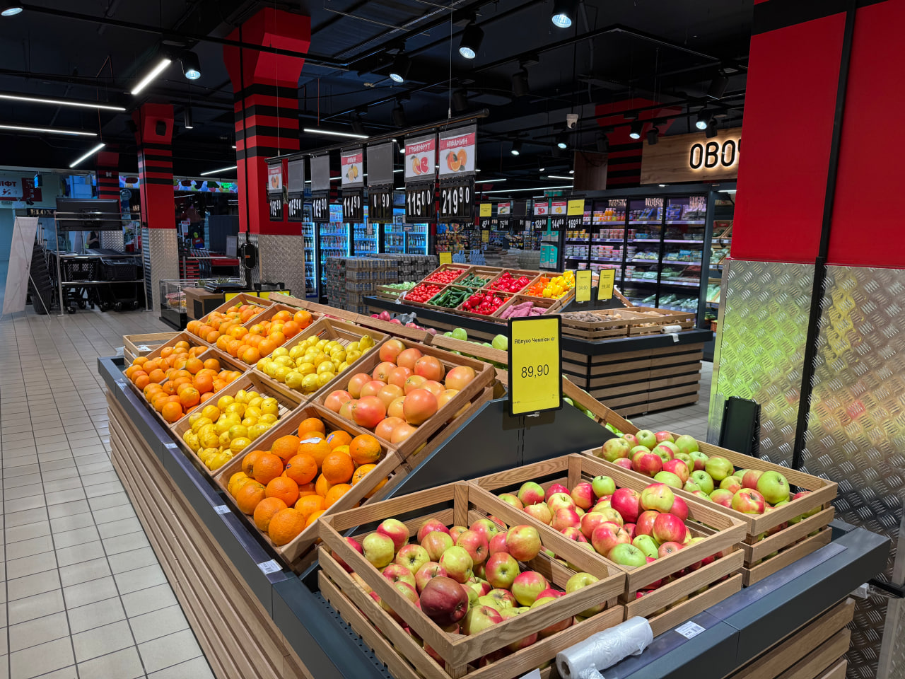 У новому магазині представлено широкий асортимент товарів щоденного попиту та спеціалізованих категорій. Зокрема, фуд-корт із готовими стравами, пекарня власного виробництва, свіжі овочі та фрукти, відділ свіжого м’яса, винний відділ та товари для дому. На полицях представлено понад 25 000 товарів (SKU) — продукція українських виробників, так і імпортного асортименту.