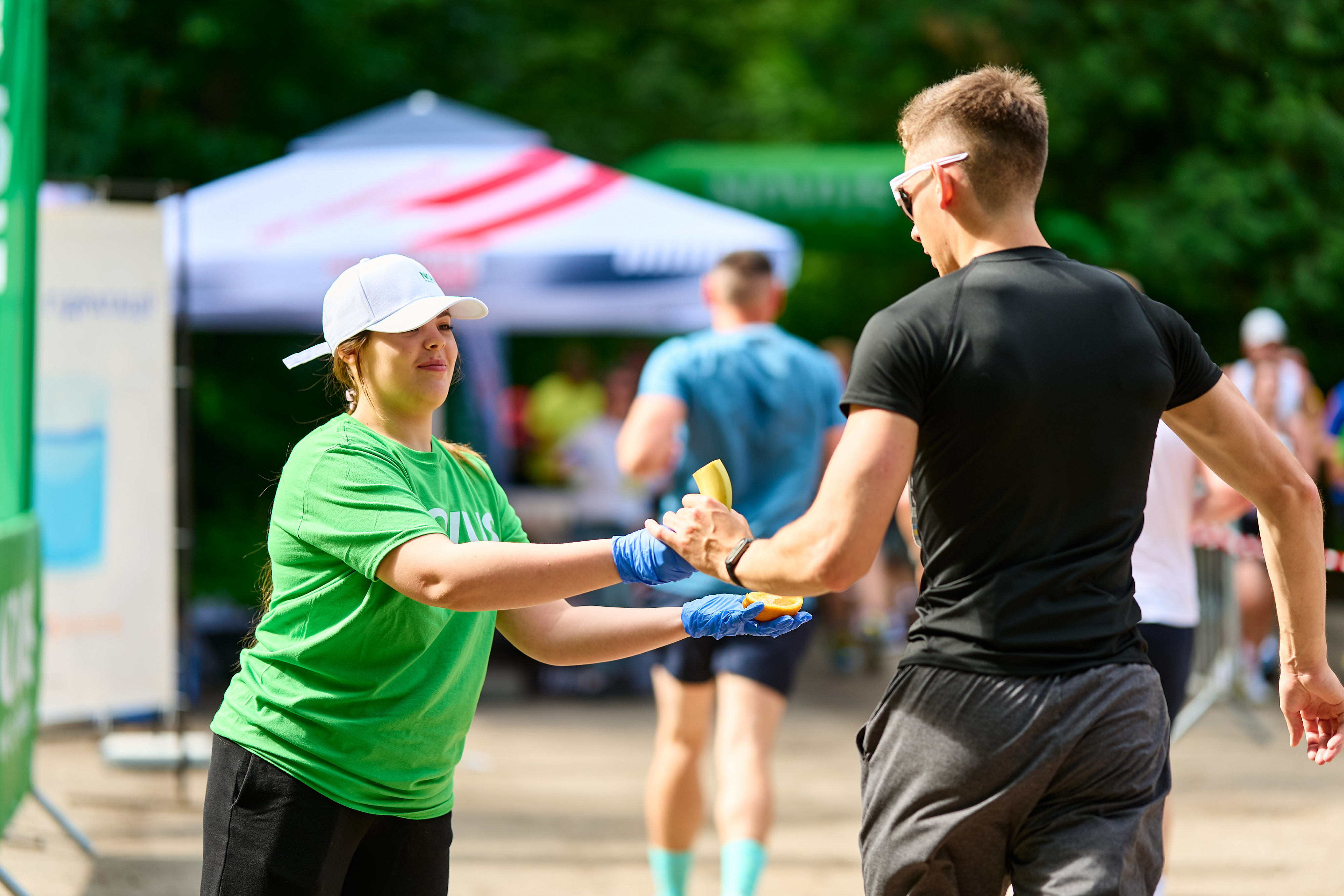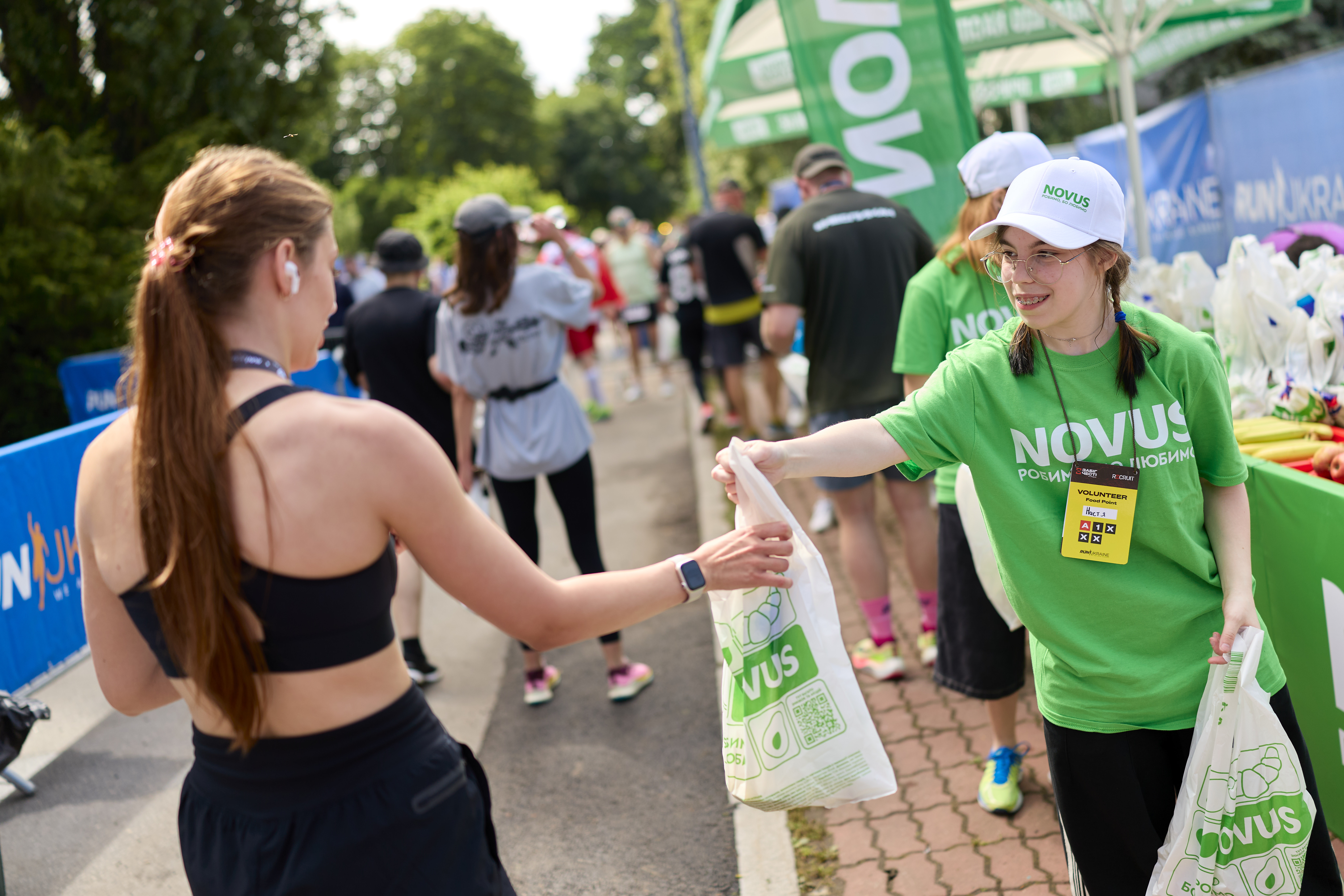 Під аркою, прикрашеною брендуванням NOVUS, хтось радісно обіймає дитину після фінішу, хтось витирає сльози — не від втоми, а від важливості моменту. Біля зони з фруктами — усміхнені волонтери, які простягають яблука, банани та пляшки води. Тут усе про турботу, підтримку й тепло. Бігли батьки з дітьми, друзі, колеги — ті, хто розділяє не лише кілометри, а й переконання. Бо коли фінішуєш не сам, а поруч із тими, хто важливий — це додає сили.