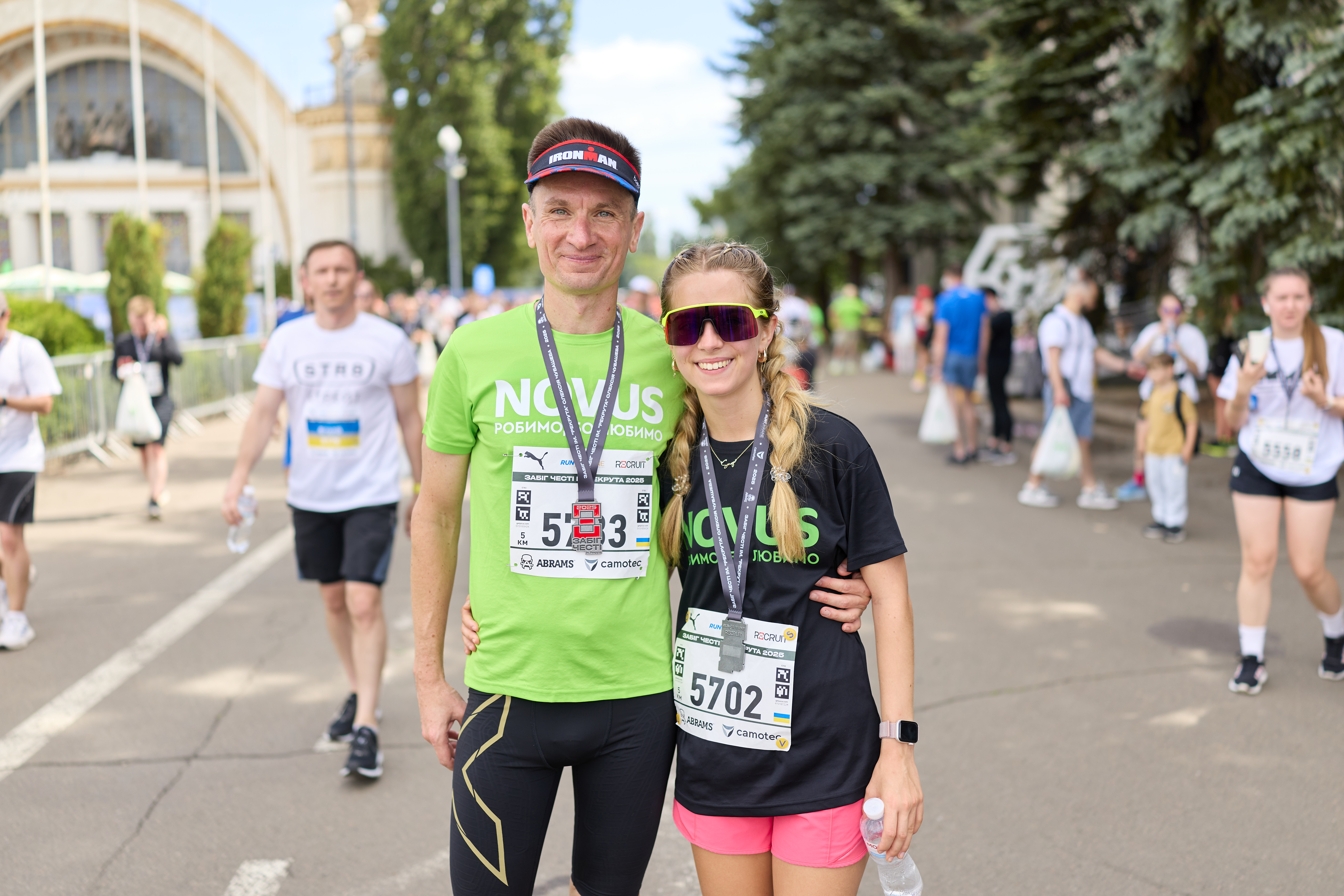 До забігу долучився і директор з правових питань NOVUS Максим Бугаєв, разом із донькою Софією вони пробігли 5 км. «Він попереду, а я за ним — не здаюсь!», — з усмішкою сказала дівчинка. Такий біг — про довіру, підтримку і важливі спільні моменти.