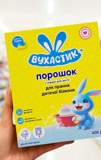 «Вухастик» — це український бренд засобів для догляду та прання, створений для всієї родини. Його продукція виготовляється на потужностях AFINA Group в Україні й уже представлена на ринках Молдови та Грузії.