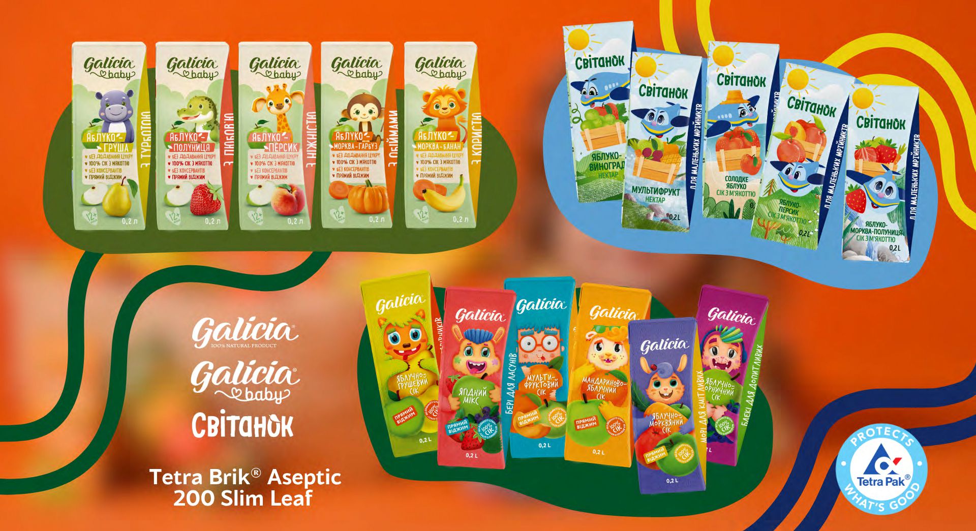 Цього року компанія зробила важливий крок — оновила пакування дитячих соків об’ємом 200 мл, перейшовши на упаковку Tetra Pak® TBA 200 Slim Leaf. Попри звичний для споживачів об’єм, саме пакування зазнало змін — як із технологічного, так і з функціонального боку. Це не новий формат, а вдосконалене рішення, яке поєднує: зручність для дітей, ефективність виробництва та сучасний підхід до дизайну. Оновлене пакування є унікальним для українського ринку, і «Галіція-Трейд» стала першим українським виробником соків, який впровадив його у власне виробництво.