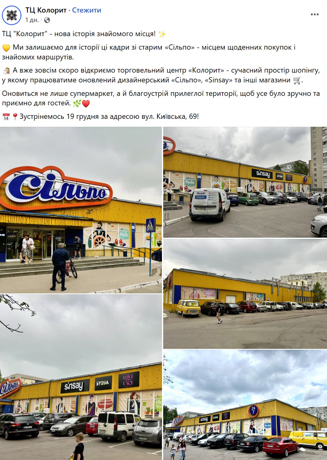 У Рівному відкриється ТЦ «Колорит» з оновленим дизайнерським «Сільпо»