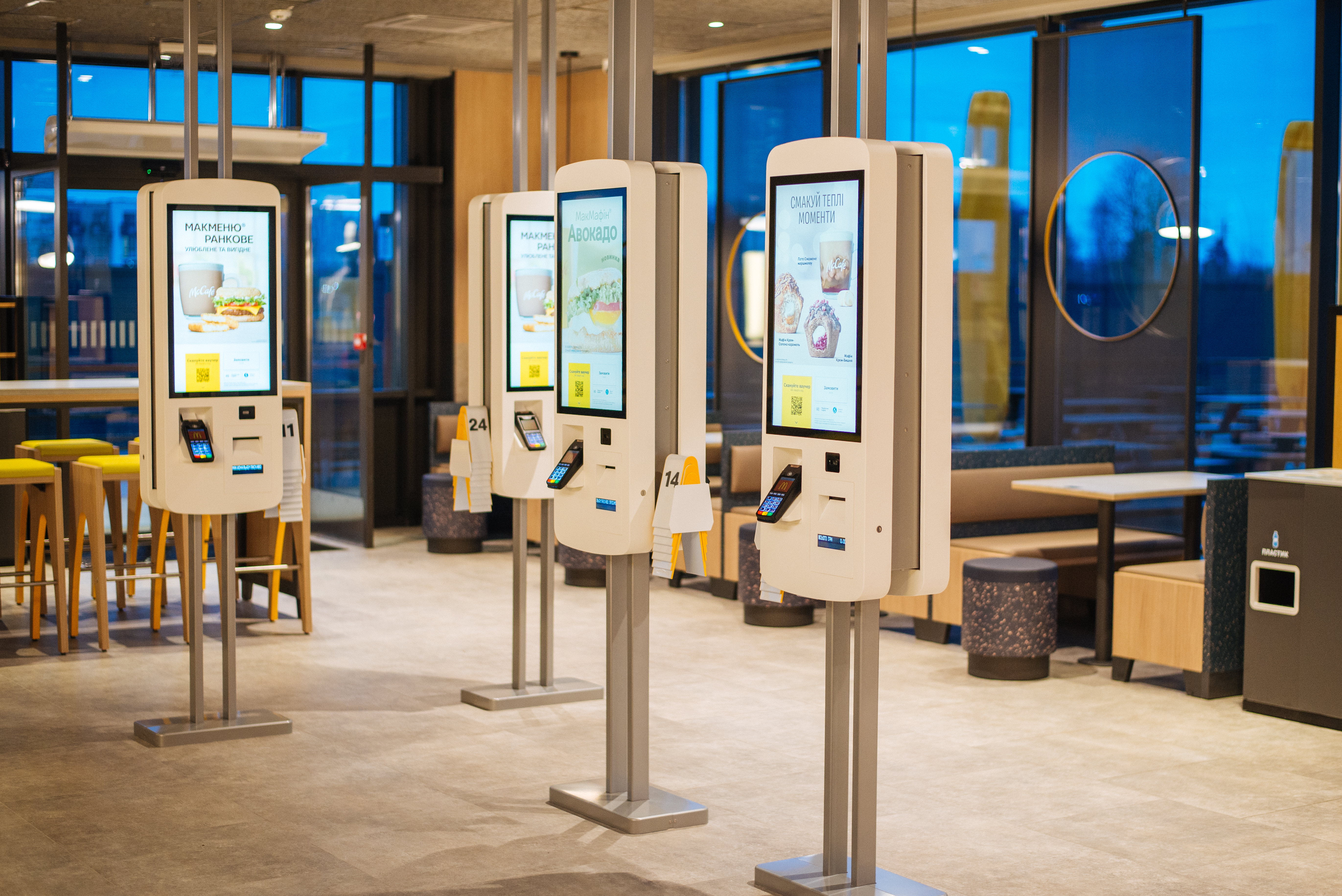 Новий «МакДональдз» має площу 468,9 м² та облаштований 121 місцями в залі й 156 на терасі. Для гостей доступні всі основні канали продажів: замовлення в залі на терміналах самообслуговування з 7:00 до 23:00, «МакДрайв» із 5:00 до 23:30 та сервіс «Мобільне замовлення» через застосунок «МакДональдз», завдяки якому клієнти можуть зробити й оплатити замовлення заздалегідь та отримати його в закладі.