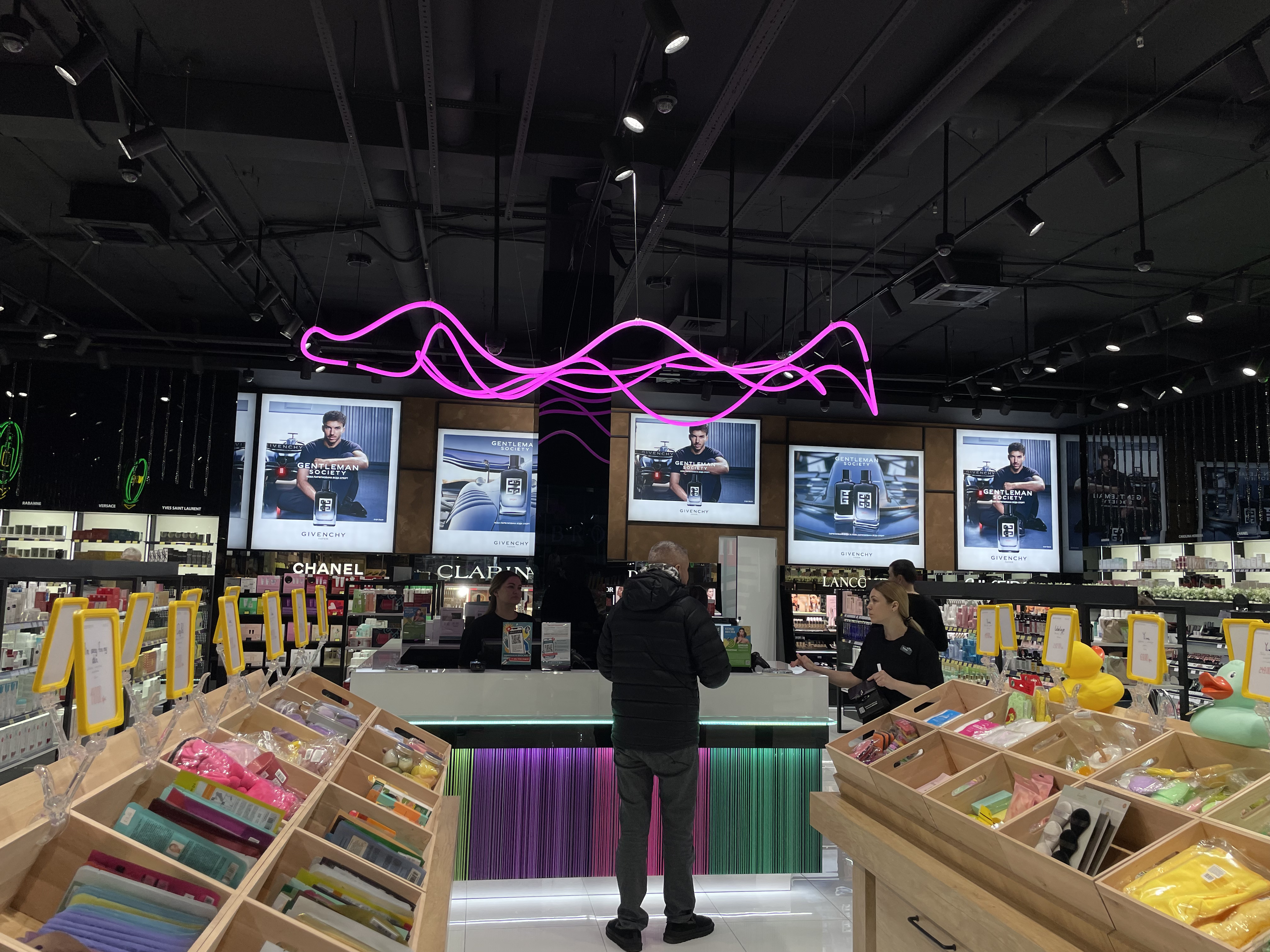 Водночас концепція магазину доповнена виразними дизайнерськими рішеннями: акцентами в навігації та просторових елементах, що додають йому динаміки та підкреслюють сучасний характер інтер’єру.
