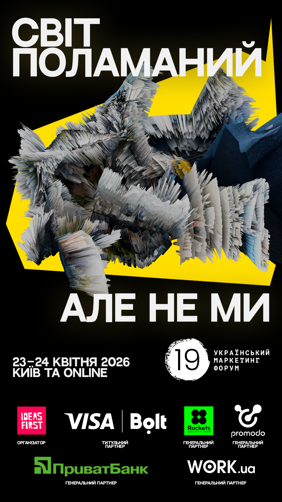 Щороку Український маркетинг-форум шукає для своїх рекламних комунікацій креативні ідеї, які підтримують ключову тему події. У 2026-му важливими для професійної маркетингової спільноти є питання, як жити та працювати у світі, що поламався, як продовжувати рух, коли звичні моделі та правила не діють.