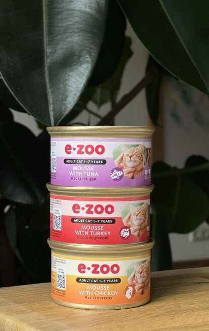 Мережа зоомаркетів E-ZOO запускає власну торгову марку — E-ZOO™. Першим продуктом під власним брендом став консервований корм для котів у форматі мусу.