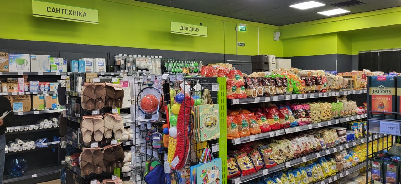 В асортименті супермаркету широкий асортимент продуктів, алкогольних напоїв, товарів для дому та сантехніки.