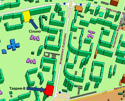 Объектами исследования компании GT Partners Ukraine стали по одному случайно выбранному магазину каждой из сетей, а именно: «Таврия-В» по ул. Академика Королева, 120 и «Сільпо» по ул. Вильямса, 75.