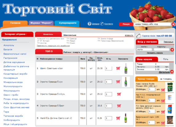 Заметим также следующее: если покупки онлайн в магазинах электроники уже стали в Украине обычным явлением, то онлайн-продажу продуктов питания в нашей стране все еще встречают с недоверием. Поэтому поле деятельности для новых операторов данного сегмента рынка остается чрезвычайно широким. „Торговий Світ” попробовал свои силы и не ошибся.