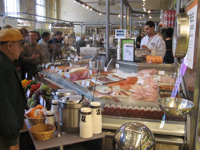 7 гурме-рынков Balducci"s работают в нескольких американских штатах Maryland, Virginia, New York and Connecticut. У сети есть слоган: Food lover’s market. Вдохновение и чудесный вкус продуктов от Balducci"s вам гарантирован. Закупщики тщательно отбирают продукты, если речь идет от рыбы, то она поступает свежайшая, прямо из порта. Balducci"s не стремится за огромным ассортиментом. На рыбном прилавке вы найдете черную икра, семга, тунец, телапия, сибасс, кальмары, креветки, мидии и устрицы. Но зато это будет фантастическая рыба. Например, особый рецепт копченой семги с натуральной морской солью,тросниковым сахаром и настоящим шотландским виски. Лучшие рецепты и вкусные блюда из Старого Света найдут покупатели в Balducci"s.