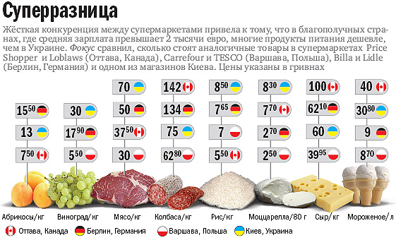 Например, только в течение 2009 года немецкие дискаунтеры Lidl, Aldi и Plus, а также супермаркеты Edeka и Netto двенадцать раз снижали цены на продукты питания. В 2010 году продуктовая потребительская корзина среднего немца стоит 29 евро, а в Украине этот показатель больше в два раза – 60–70 евро.