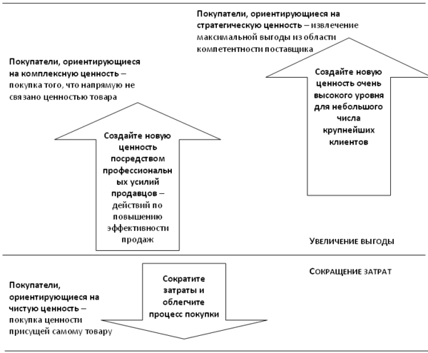 И для покупателей каждого типа существует соответствующий способ продаж, который наилучшим образом отвечает требованиям данного покупателя к созданию ценности.