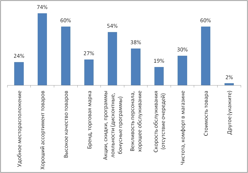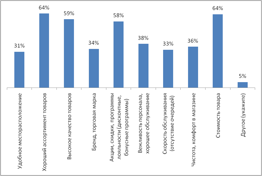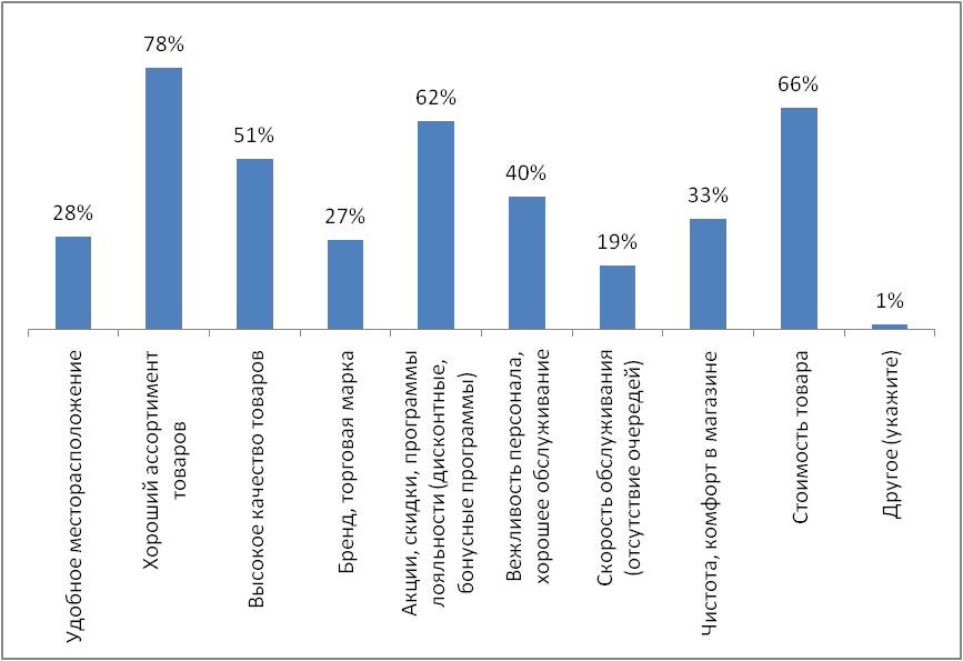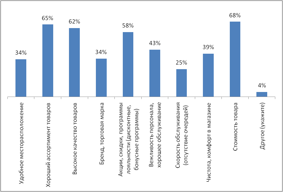 Любимый магазин одежды для мужчин и женщин означает не одно и то же. Мужчинам больше всего нравится одеваться там, где для них наиболее приемлема стоимость товаров(68% мужчин), а женщины в большинстве своем предпочитают точку с наилучшим ассортиментом платьев, брюк и других видов одежды (78% женщин).