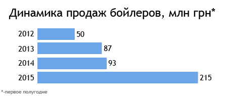 Но самый большой рост спрос наблюдается в сегменте бойлеров. Например, если в первом полугодии 2014 г. их было продано на 93 млн грн, то уже за аналогичный период этого года - 215 млн грн.