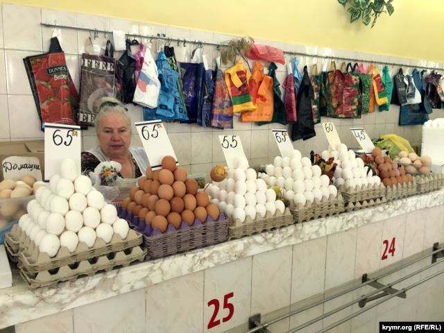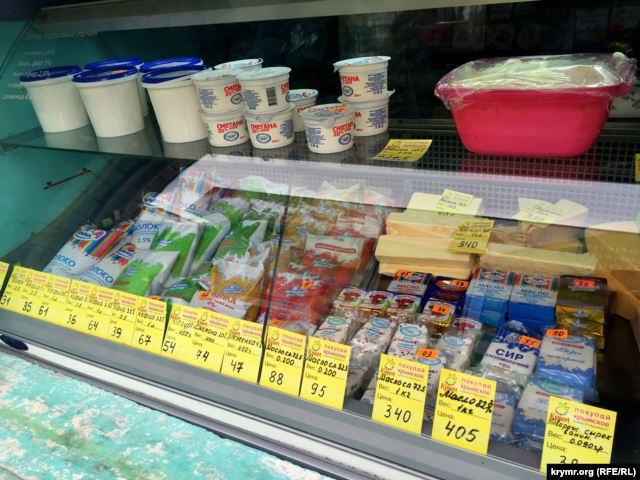 В среднем на 10% подорожала молочная продукция. Цена творога на Центральном рынке – от 150 до 170 рублей за килограмм, сливочного масла – 340 рублей, пол-литровой пачки крымского молока – 31 рубль, кефира – 35-39 рублей (450 г). «Блокада тут ни при чем, она никак не сказалась, – заверила Крым.Реалии продавщица в молочном лабазе. – У нас вся продукция местная. А то, что она подорожала – ожидаемо, скоро наступят холода, корм подорожает, к Новому году цена еще вырастет, потом коровы отелятся и цена упадет».
