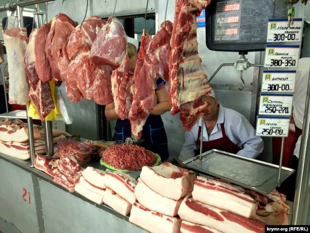 По словам торговцев мясом, в прошлом некоторая часть поставок шла с материковой Украины, сейчас их отсутствие сказывается на цене. Справедливости ради надо отметить, что продавцы на Центральном рынке готовы уступить при покупке мяса.