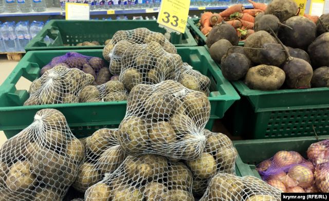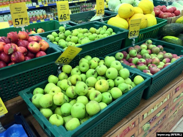 В сети супермаркетов цены на продукты также выросли. К примеру, в одном из симферопольских «Фуршетов» баклажаны стоят 64 рубля за кг, болгарский перец почти 50 рублей. В сети ПУД яблоки предлагают от 42 до 62 рублей, картофель – 33 рубля, причем, если верить надписи на ценнике, указанные фрукты и овощи были привезены с материковой Украины.