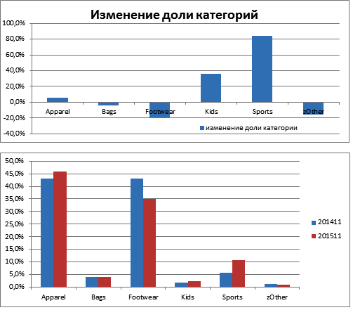 По данным Lamoda, наиболее активно росли интернет-продажи спортивной и детской одежды. Хотя доля этих подкатегорий пока остается невысокой.