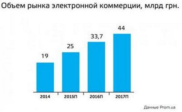 . По прогнозам Prom.ua, объем рынка электронной коммерции должен вырасти с 25 млрд грн в 2015 году до 33,4 млрд грн в 2016-м.
