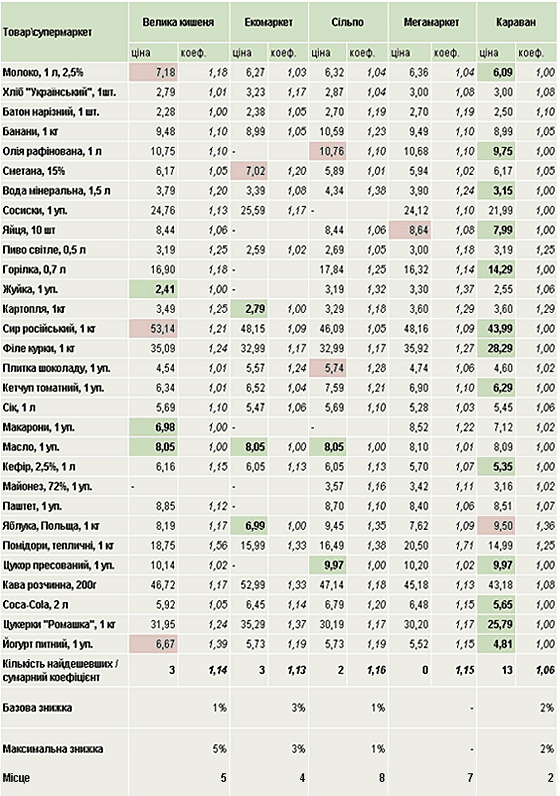 При розрахунку підсумкових місць у рейтингу враховувалися дисконтні програми супермаркетів.