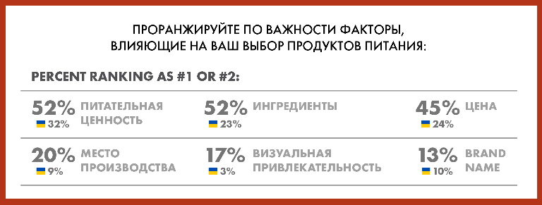 3. К нам все больше приходит понимание, что выбор продуктов питания возле полки - не просто выбор среди красивых этикетов различных брендов. Важность выбора гораздо выше. Сформировано мнение, что диета не менее лекарств важна в поддержании здоровья (88% прозьюмеров). Более того, оказывается наш выбор продуктов питания влияет на здоровье планеты в целом (52% украинских прозьюмеров отдают предпочтение этично и экологично-ответственным компаниям).