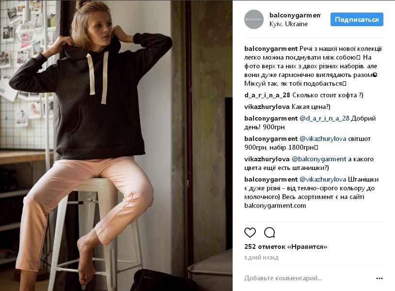 У бренда домашней одежды Balcony Garment подобных проблем не было. Его Instagram-аккаунт появился в 2013 году. Тогда, по словам представителей бренда, от этой соцсети не было серьезных ожиданий. Так как никто не мог предположить, как она будет работать и каких масштабов достигнет в Украине. "В самом начале мы воспринимали Instagram как портал с визуально наполненным контентом, где мы могли делиться своим видением дизайна домашней одежды", - рассказывают в компании.